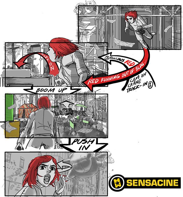 También tenemos en exclusiva un storyboard protagonizado por Red, interpretada por Lily Collins, personaje cuyos detalles se mantienen aún en secreto.