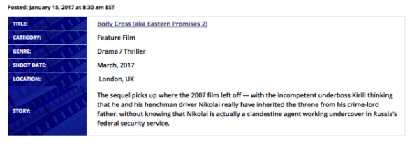Después de años y años de rumores sobre una posible secuela de Promesas del este (2007), parece que la realización de una segunda parte que continúe la historia del chófer Nikolai Luzhin (Viggo Mortensen) está más cerca que nunca. Según el portal de internet My Entertainment World -web en la que aparecen las películas que se filmaran durante el año-, Promesas del este 2 empezaría su rodaje en el mes de marzo.