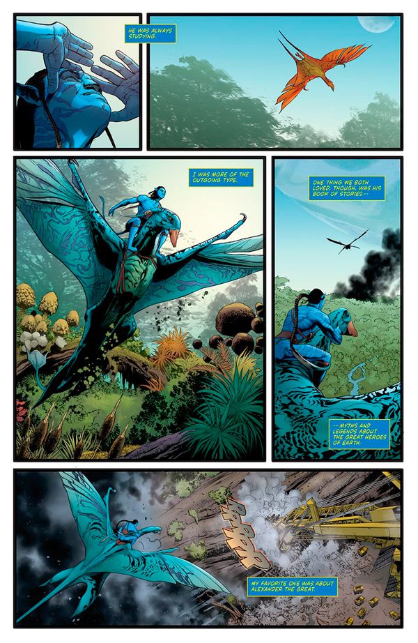 Como anunció James Cameron en la New York Con de 2015, informa Mashable, el cómic de Avatar de Sherri L. Smith recogerá situaciones y arcos argumentales ocurridos antes de la cinta original... pero también después. El primer número estará disponible en EE.UU a partir del 6 de mayo de 2017 aunque el citado 'site' ha tenido acceso a las primeras páginas en las que Jake Sully, el personaje de Worthington, vuela a lomos de un Ikran, la criatura alada con la que tiene un enlace mental.