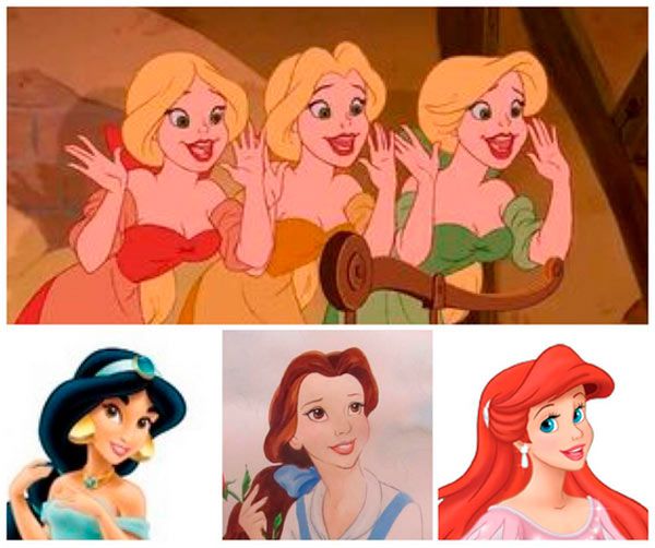 Existen decenas de 'easter eggs' en el universo de Disney, pero no todos son lo que parecen. Hace tiempo que una imagen de La Bella y la Bestia se ha hecho viral por su posible referencia a otras princesas del estudio. En ella aparecen las trillizas rubias de la película y hay quien ha visto que su peinado se relaciona con el de Jasmine, Bella y Ariel. Puedes ver la comparación en esta imagen que ha creado el usuario de Reddit cnostaw.