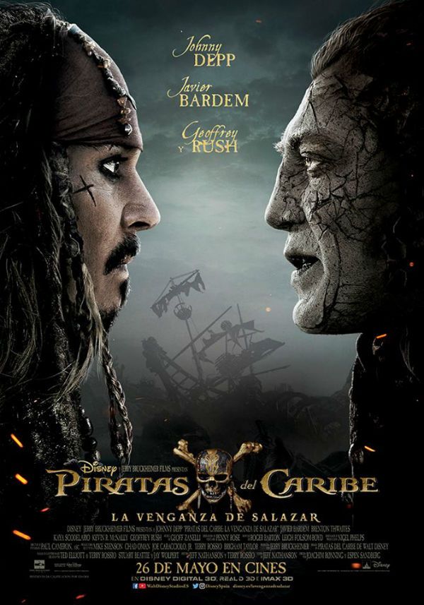 En el cartel, el pirata se enfrenta cara a cara con el villano de esta entrega: el capitán Salazar. Javier Bardem (Diré tu nombre) es el encargado de dar vida al nuevo enemigo de Sparrow, un hombre que se la tiene jurada al protagonista desde hace años, cuando el personaje de Depp era un joven bucanero.