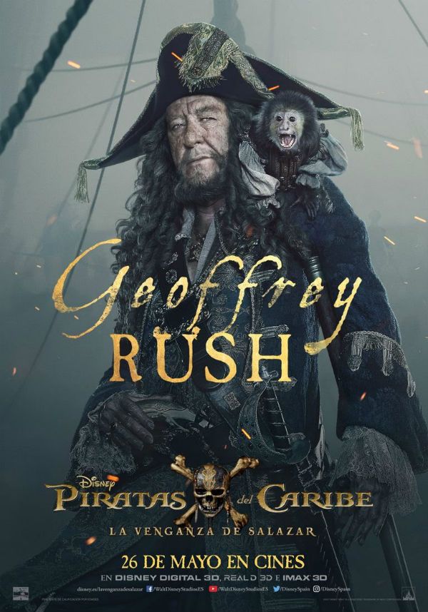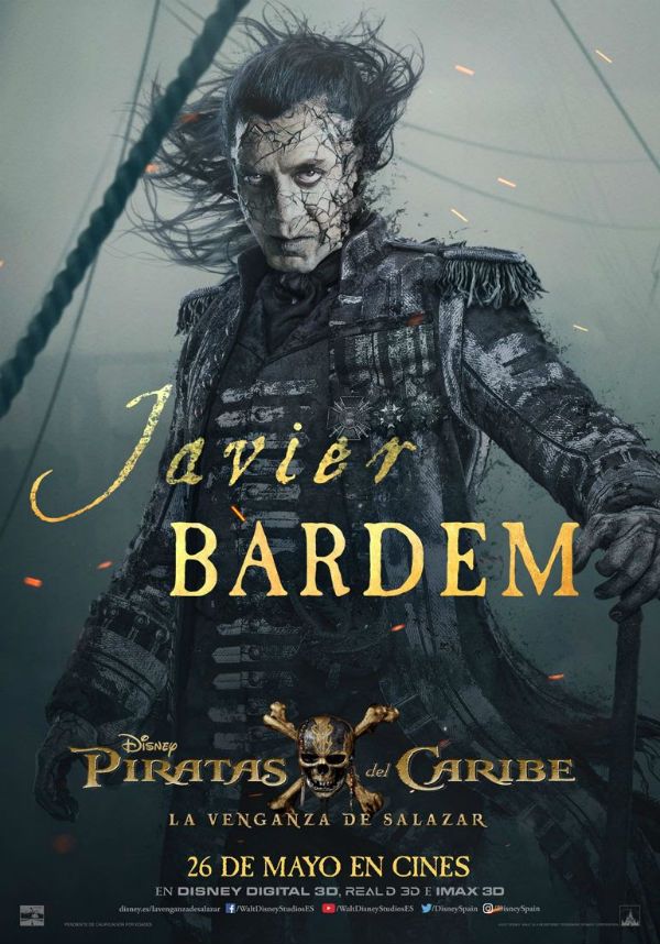 Los seguidores de Piratas del Caribe tienen la oportunidad de volver a ver a Jack Sparrow seis años después del estreno de En mareas misteriosas, la cuarta y última entrega de la franquicia. La nueva aventura del intrépido protagonista (Johnny Depp) y Will Turner (Orlando Bloom) llega a las salas de cine de España el próximo 26 de mayo bajo el título de La Venganza de Salazar. ¿Sabes ya quiénes son los personajes de la cinta? Disney ha compartido una serie de carteles individuales en español que muestran a Sparrow, al Capitán Salazar y al Capitán Barbossa, entre otros, al detalle.