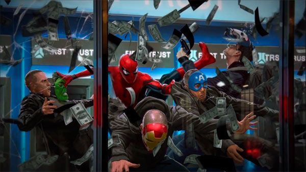 Gracias a este nuevo 'concept art' disponible en la Red [vía CBM], puedes recordar la famosa escena en la que 'Spidey' (Tom Holland) intenta detener a un grupo de delincuentes con caretas de Los Vengadores. Pero también tienes más de cerca al Adrian Toomes interpretado por Michael Keaton y hasta a un Spider-Man luminoso con un detalle de la 'interface' del traje diseñado por Tony Stark (Robert Downey Jr.).
