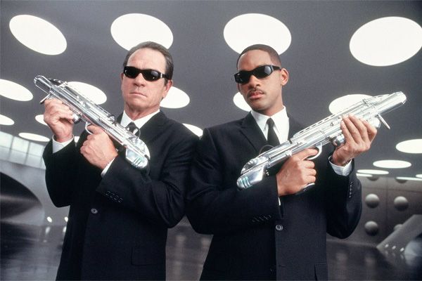 3. Cuando K revela que hay unos 1.500 aliens en la Tierra, y la mayoría están buscando cómo vivir en Manhattan, James le pregunta: ¿Taxistas? Esto responde a una referencia al escritor Douglas Adams y su Guía del autoestopista galáctico, enconreto a la cuarta novela, Hasta luego, y gracias por el pescado, donde el archivista Ford Prefect habla sobre que el hecho de que ser taxista en Nueva York es una buena forma de que los alienígenas vivan bien mientras visitan la ciudad.
