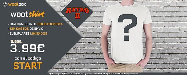 ¿Qué tienes que hacer para conseguirla? Entra en Wootbox.es y suscríbete a la Wootshirt. Este mes la camiseta estará relacionada con la caja Retro II y lo mejor de los videojuegos vintage, como oferta de lanzamiento, ¡puedes conseguirla por 3,99€! Utiliza el código START y disfruta de la promoción. ¡Recuerda que las unidades son limitadas!