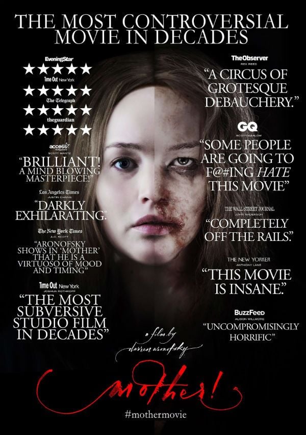 “Ambos son terribles, pero ese póster de madre! es cruel”, publica @NikkiBaughan. “¿Qué tal si no usamos la cara de una mujer maltratada para anunciar tu película? Eso es asqueroso”, escribe @CinemaBite. “Por qué estrenar ese póster horrible de madre! después de que tres buenos se hayan estrenado”, declara @bmrow. “madre! es mi película favorita de 2017 de lejos. Dicho esto, este póster es atroz”, tuitea @rozillatheguy.
