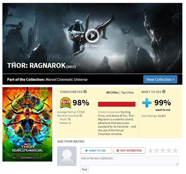 Estos "amigos del trabajo" protagonizan una de las películas más esperadas del año, una aventura sin igual que está consiguiendo los elogios de todos los fans de los superhéroes y de los críticos en general. Tal y como publica la página web Rotten Tomatoes, la nota de Thor: Ragnarok está muy cerca de la matrícula de honor y es que ha obtenido un 98% en base a las críticas de los medios especializados y de los espectadores que ya han tenido la oportunidad de disfrutar de ella.
