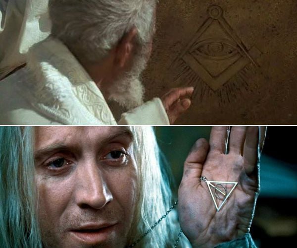 "Literalmente 20 años más tarde miré la imagen de las Reliquias de la Muerte y comprendí lo similares que eran", ha asegurado Rowling respecto al emblema de los masones, "tengo la sensación de que en algún nivel de mi subconsciente están conectados, ya que como he dicho otras veces, la saga trata sobre la pérdida y, si mi madre no hubiese muerto, la historia hubiese sido completamente diferente".