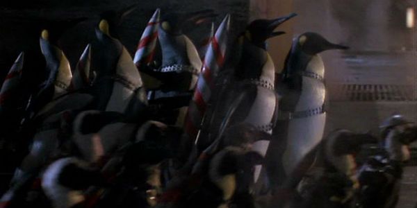 Alfred Pennyworth (Jeremy Irons) se pasa toda Liga de la Justicia o bien convenciendo a su jefe Bruce de que se busque novia o bien lanzando observaciones irónicas sobre lo que está pasando. En cierto momento, dice añorar "tiempos más sencillos", donde el mayor problema eran "los pingüinos explosivos". Una observación bastante amarga en el tiempo de los alienígenas y los dioses, y que lanza un guiño sin disimulo a Batman vuelve de Tim Burton, donde el Pingüino (Danny DeVito) lanzaba a un ejército de homólogos con dinamita a arrasar Gotham. En serio, eso pasó.