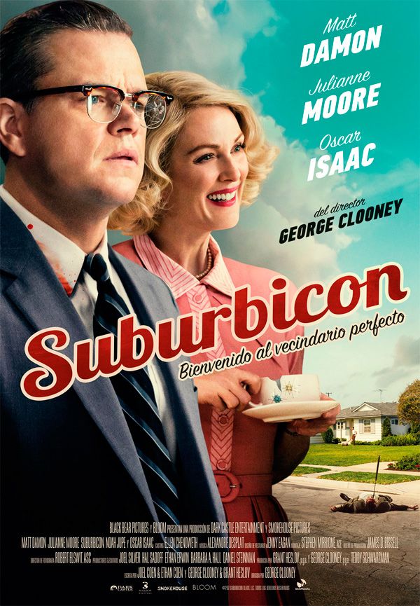 "Bienvenidos a Suburbicon, un pueblo lleno de sorpresas y emociones". Así empieza el tráiler en español de Suburbicon, la nueva película como director de George Clooney (Buenas noches, y buena suerte, Monuments Men), que se estrena el 7 de diciembre. El guion lo firman los hermanos Joel y Ethan Coen y, gracias a DeaPlaneta, también puedes ver su póster en castellano. En el reparto encontrarás a Matt Damon (Ocean's Eight), Julianne Moore (Gloria) y Oscar Isaac (Star Wars: Los últimos Jedi).