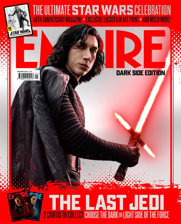 Quedan poco más de dos semanas para el Star Wars: Los últimos Jedi (15 de diciembre) y la revista Empire ha enseñado dos nuevas portadas temáticas con Kylo Ren (Adam Driver) y Rey (Daisy Ridley) como protagonistas. La publicación británica ya había colocado a los adorables porgs en su portada para suscriptores. Puedes elegir entre Luz y Oscuridad cuando puedas comprar el número a partir de este jueves, y además viene con un suplemento especial de 48 páginas por el 40 aniversario de la saga.