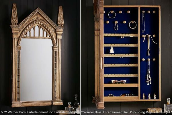 Mochilas, baúles, banderines… son muy variados los elementos que puedes encontrar. Desde un espejo inspirado en el de Oesed que mostrará los "deseos de tu corazón" y te permitirá guardar joyas en su interior hasta una lámpara con la forma de Hedwig, pasando por una snitch dorada que funciona como despertador y reloj.