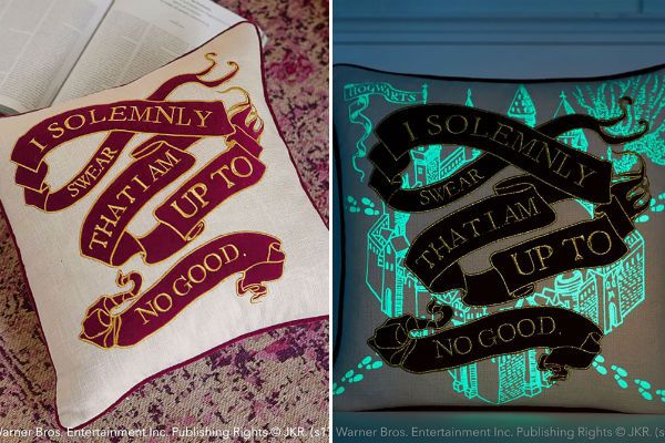 Por supuesto, PBteen cuenta con una amplia gama de cojines: con el logo del andén 9 ¾, con las reliquias de la Muerte el lentejuelas y con el mapa del merodeador, que brilla en la oscuridad si prometes solemnemente que tus intenciones no son buenas.
