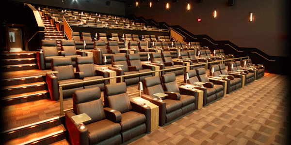 El ambiente más informal que podrás encontrar en una sala de cine se encuentra en Cinépolis Luxury, California. Los sofás de cuero reclinables, las lámparas individuales y el servicio de comida y bebida a la mesa recuerdan a la clase business de un avión privado. Además, las salas están preparadas tanto para cine como para reuniones y conferencias de empresa.