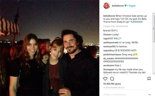 Pero Drew Barrymore no es la única estrella del séptimo arte a la que adora Bella Thorne. En 2013, tuvo la oportunidad de conocer a otro de sus actores favoritos, Christian Bale, con el que no perdió la oportunidad de fotografiarse.