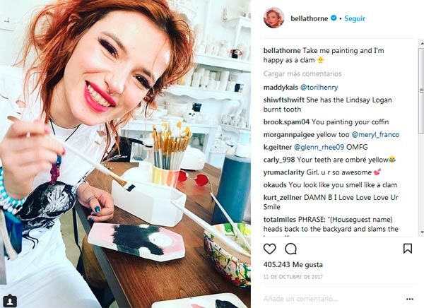 La joven actriz utiliza sus redes sociales para mostrar sus pasiones, como la pintura; sus salidas nocturnas; los eventos a los que acude... todo ello hace que se haya convertido en una de las actrices con más seguidas en Twitter (6,9 millones de seguidores), Instagram (17 millones de seguidores), Facebook (9,6 millones de seguidores)... Estas cifras han contribuido a que Bella Thorne se haya colado entre los 10 actores con más éxito en las Redes.