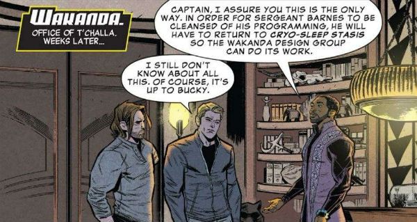 Según explican las viñetas, pasan tan solo unas semanas desde que Steve Rogers rescata a sus compañeros de prisión y su llegada a Wakanda en busca de ayuda para su amigo de la infancia. Por tanto, existen varias opciones que explican cómo encajas ambas líneas temporales. Una de ellas es que el encuentro se produjese en algún punto de la película, solo que fue omitido para no desviarnos de la trama principal.