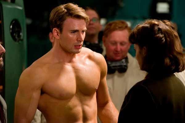 El director de la película lo tenía todo planeado de cara a la transformación de Steve Rogers en Capitán América tras recibir el suero del súper soldado. Johnston hizo que esa fuese la primera escena que Hayley Atwell, Peggy Carter en el filme, y Evans rodasen juntos y, además, no dejó que la actriz viese a su compañero de reparto hasta ese momento. Por ello, la actuación de Atwell -su cara de sorpresa - fue improvisada y no estaba en el guion. La intérprete, por su parte, ha reconocido que le tocó el pecho "de forma espontánea" y que estaba tan impresionada que casi se sale del papel y arruina la escena.