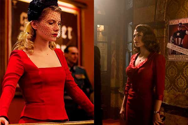 Una de las escenas más recordadas de la película es aquella en la que Peggy Carter entra en el bar en el que se encuentran Steve Rogers y su compañero Bucky después de haber sido rescatado. No obstante, el protagonista de ese momento no es ninguno de ellos, pero sí el vestido rojo que lleva Hayley Atwell. En realidad, esa prenda fue diseñada para otra actriz y otra cinta. Anna B. Sheppard creó ese vestido para Mélanie Laurent en Malditos Bastardos, pero la intérprete francesa nunca lo llevó en el filme de Quentin Tarantino.