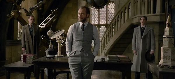 Este adelanto comienza mostrando la llegada de dichas autoridades, incluyendo -o eso parece- a Tina Goldestein interpretada por Katherine Waterston. El encuentro entre el profesor y los agentes se produce en el aula de Defensa Contra las Artes Oscuras, tal y como asegura Pottermore y tal y como se puede observar si se comparan estas imágenes con las películas de la saga Harry Potter.