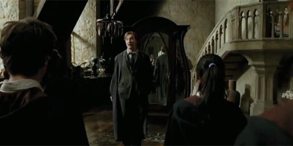 Y es que se desconoce por qué está Dumbledore en esa clase, pero está claro que es la misma que un día ocuparon profesores como Gilderoy Lockhart, Remus Lupin o Severus Snape en Harry Potter y la Cámara Secreta, Harry Potter y el Prisionero de Azkaban y Harry Potter y el misterio del príncipe, respectivamente -el plano de Snape pertenece a la tercera película, en la que sustituyó brevemente a Lupin-.