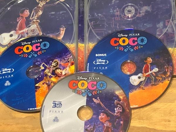 Las dos versiones en Blu-ray contienen los extras: Bienvenido a la fiesta - Una exploración musical de los esqueletos de la Tierra de los Muertos en Coco-; Dante - Descubrimos cómo el equipo de producción se enamoró de la raza de perros mexicana xoloitzcuintle-, y Cómo dibujar a un esqueleto - El dibujante de Pixar Daniel Arriaga explica cuál es la forma más rápida y fácil para dibujar esqueletos usando formas simples.