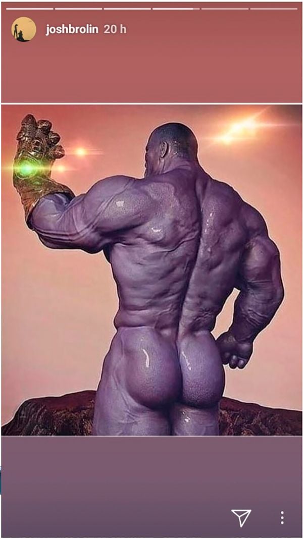Vengadores: Infinity War ha servido a los espectadores para conocer más de cerca la personalidad del temible Thanos, villano interpretado por Josh Brolin que persigue el objetivo de conseguir todas las Gemas del Infinito. Aunque desde un principio pareciese que este antagonista solo busca tener poder, en la película se descubre que su meta es poder librar al mundo del mismo destino que su planeta, Titán. Todos esos detalles hacen referencia la interior del personaje, pero Brolin ha decidido compartir su exterior con una fotografía de Thanos desnudo en su cuenta de Instagram.