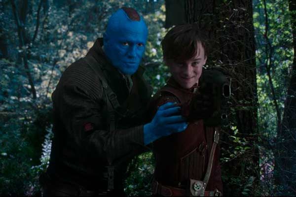 Yondu (Michael Rooker) enseña a Peter Quill a usar un Bláster.