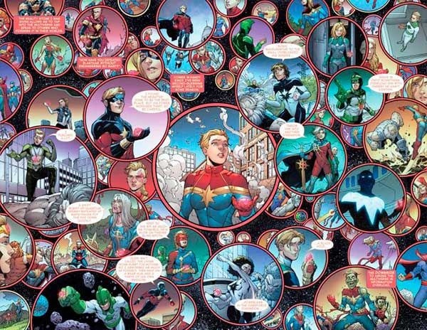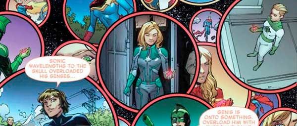 El rodaje del filme ya ha comenzado y los seguidores de la franquicia ya han podido echar el primer vistazo a la actriz caracterizada como la superheroína. Pese a que muchos esperaban que la vestimenta tuviese los colores rojo, amarillo y azul de los cómics, Larson ha aparecido en el set con un traje verde, plateado y negro. Ahora, esta versión del personaje ha aparecido en las historietas de Marvel. Como puedes ver en la imagen que encontrarás a continuación, la Captain Marvel de Larson aparece en un evento especial centrado en las Gemas del Infinito.