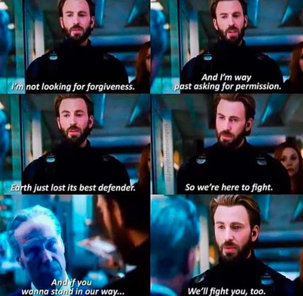 Aunque puede parecer una frase bastante normal, lo cierto es que tiene un gran significado. Después de su enfrentamiento en Civil War, Tony Stark y Steve Rogers no se han vuelto a hablar y Iron Man no se decidió a llamarle cuando se inicia el caso en Nueva York tras la llegada de la Orden Negra de Thanos. Pese a su pelea, Capitán América siempre ha respetado lo que ha hecho por nuestro mundo. Por ello, que le describa como el mejor "defensor" de la Tierra gana más peso con este escenario de fondo.