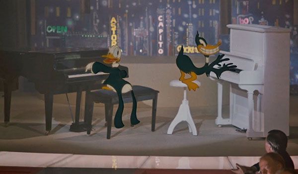 Esta última compañía fue, comprensiblemente, la más difícil de convencer por parte de Spielberg, y sólo accedió a respaldar Roger Rabbit si Disney garantizaba que sus personajes principales, Bugs Bunny y el Pato Lucas, tendrían exactamente los mismos minutos en pantalla que Mickey Mouse y el Pato Donald. Un requisito que condujo a dos de las escenas más celebradas del film: la del duelo de pianos, y la de Bugs y Mickey vacilando a Eddie Valiant mientras saltan en paracaídas. Historia del cine pura, pero también, claro, historia de nuestra infancia.