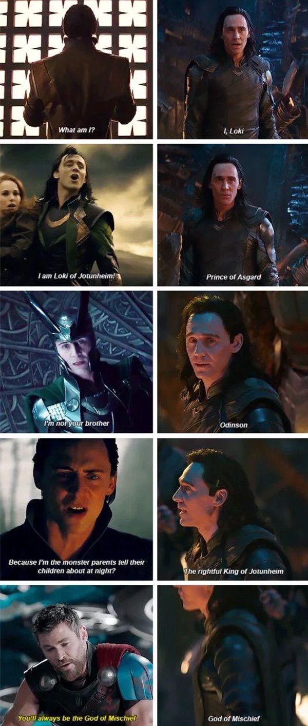 Un usuario de 9gag intenta explicar con una serie de imágenes por qué, en su opinión, el monólogo del personaje aficionado a las travesuras es perfecto y habla de su desarrollo como personaje. En anteriores entregas, Loki renegaba de su condición de príncipe de Asgard, rechazaba su relación fraternal con Thor y se describía como un monstruo por su parentesco con los gigantes de hielo del rey Laufey, su padre biológico. ¿Se trata de un sobreanálisis o crees que tiene sentido dada su evolución?