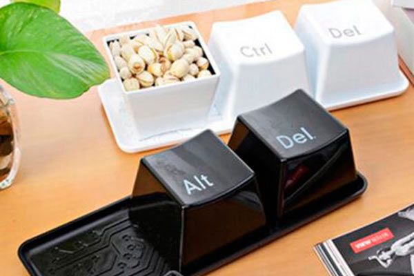 Para los que prefieren hacer este tipo de planes con amigos. Estos cuencos con forma de letras de ordenador te permitirán tener todos los aperitivos que quieras a mano.