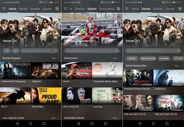· Servicio completamente gratis. Reprodución de tráilers, documentales y oferta agregada. Sin publicidad, salvo algún vídeo promocional de Huawei.
