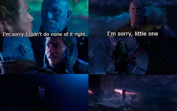 Un usuario de 9gag se ha dado cuenta de que los personajes de Chris Pratt y Zoe Saldana descubrieron lo mucho que les querían sus padres (cada uno a su manera) justo antes de tener que despedirse de ellos de manera definitiva. Peter Quill descubrió que Yondu siempre le había querido antes de que este muriese y, por su parte, Thanos le demostró a Gamora lo importante que era para él antes de lanzarla al vacío.