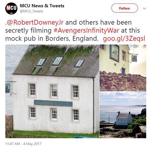 En mayo de 2017, un tuit de MCU News & Tweets -compartido ahora por un usuario de Reddit-, mostraba imágenes de este local y el siguiente texto: "Robert Downey Jr. y otros han estado rodando secretamente Vengadores: Infinity War en este 'pub' en Inglaterra".