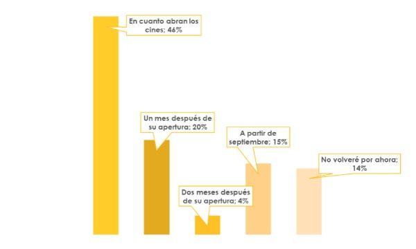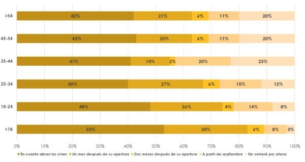 Por rangos de edad, el público joven está dispuesto a volver siempre y cuando haya películas que resulten de su interés, mientras que los más adultos están dispuestos a ver cualquier película. Eso sí, el género de acción sigue siendo el gran favorito de los encuestados, con casi el 70% de las preferencias.