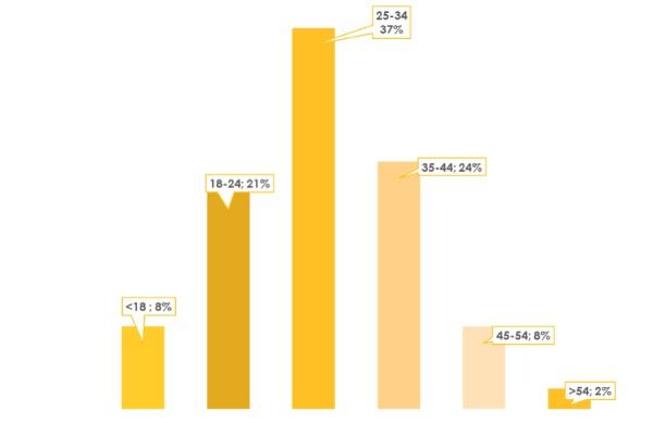 En el estudio realizado por SensaCine, Espinof y el resto de medios líderes del grupo Webedia para conocer el impacto real que tendrá la crisis en la industria del séptimo arte han participado casi 1.200 personas. De entre los encuestados, el 60% oscilaba entre los 25 y los 44 años. Y de las respuestas se comprueba que la población joven es la menos temerosa a la pandemia. Mientras que los más jóvenes (< 24) son los que más ganas tienen de volver (50% la primera semana de reapertura), los segmentos intermedios serán más prudentes. Los que más tardarán en volver al cine serán las personas entre los 35 y los 44 años (después de verano).