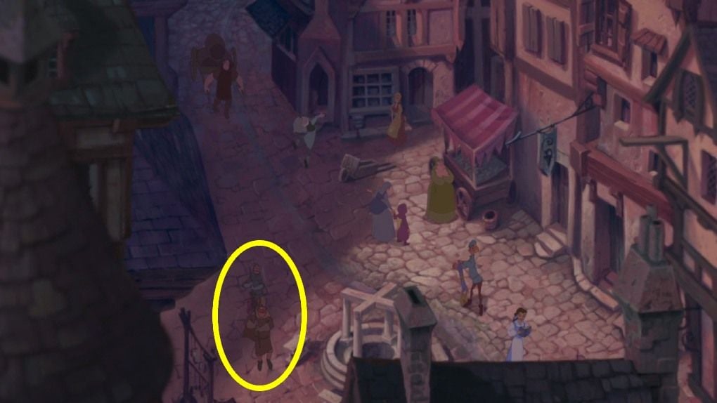 Al comienzo de El jorobado de Notre-Dame, cuando la cámara sobrevuela las callejuelas parisinas durante la canción de Quasimodo, podemos ver a unos cuantos personajes sacados de otros clásicos de Disney. Entre ellos, aunque es difícil saberlo con certeza observando a simple vista, encontramos un jabalí en un asador que llevan dos transeúntes, abajo a la izquierda. Según los fans, este animal no es otro que Pumba, el jabalí de El Rey León. ¡Menudo final más siniestro para el querido Pumba!