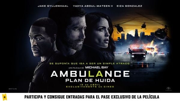 El 13 de abril llega a los cines españoles el nuevo trabajo como director de Michael Bay, Ambulance: Plan de huída. El realizador ha contado con Jake Gyllenhaal como protagonista para este trepidante ‘thriller’ que incluye una espectacular persecución por las calles de Los Ángeles. Si quieres ser uno de los primeros en ver la película, te ofrecemos la posibilidad de hacerte con una de las 16 entradas dobles que sorteamos para asistir al evento fan que se celebrará en Madrid, con la presencia de Jake Gyllenhaal, Michael Bay y Yahya Abdul. ¡Sigue leyendo para saber cómo participar!