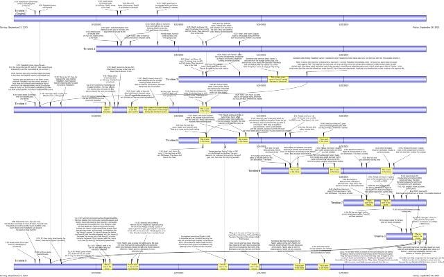 ¿Complicada? Te lo advertimos: un verdadero rompecabezas. La imagen que ves bajo estas líneas explica la compleja trama del filme. Aunque tenemos esa imagen explicativa, son muchos los espectadores que siguen dando vueltas a la historia que quería contar Carruth. Una gran película de ciencia ficción que siempre se ha llevado todas las alabanzas de la crítica por su buen trabajo en la realización de cada escena. Puedes verla a máxima resolución pinchando en el enlace.