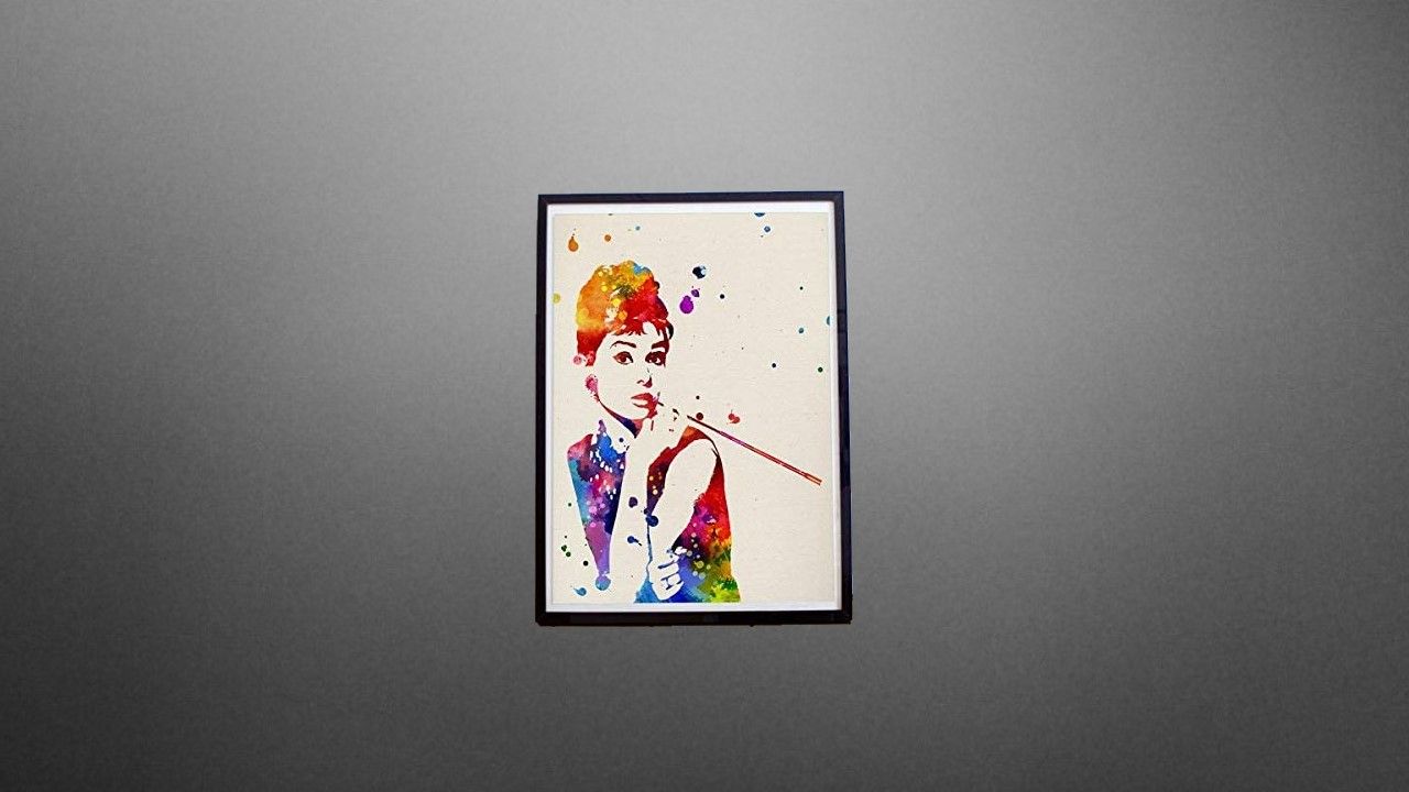 Si mencionamos la canción 'Moon River' seguro que os viene a la mente el nombre de Audrey Hepburn. Es normal, ya que la actriz protagonizó una de las escenas más memorables donde su guitarra y un balcón acompañaban a Audrey Hepburn en la clásica película 'Desayuno con Diamantes'. Ahora podemos decorar nuestros hogares con un fabuloso póster de la actriz pintado con un estilo acuarela. Su tamaño es A4 y el precio es de 8,99 euros si aplicamos el cupón de descuento que nos aparece en la descripción del producto.