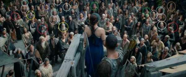 En esta imagen que puedes ver en uno de los perfiles de Reddit, este usuario ha destacado con círculos de colores las personas que están duplicadas entre la multitud. Distribuidas en diferentes zonas, pero iguales. Resulta curioso que en una ficción que ha costado 465 millones de dólares, una media aproximada de 58.1 millones de dólares por episodio, ocurra este caso.