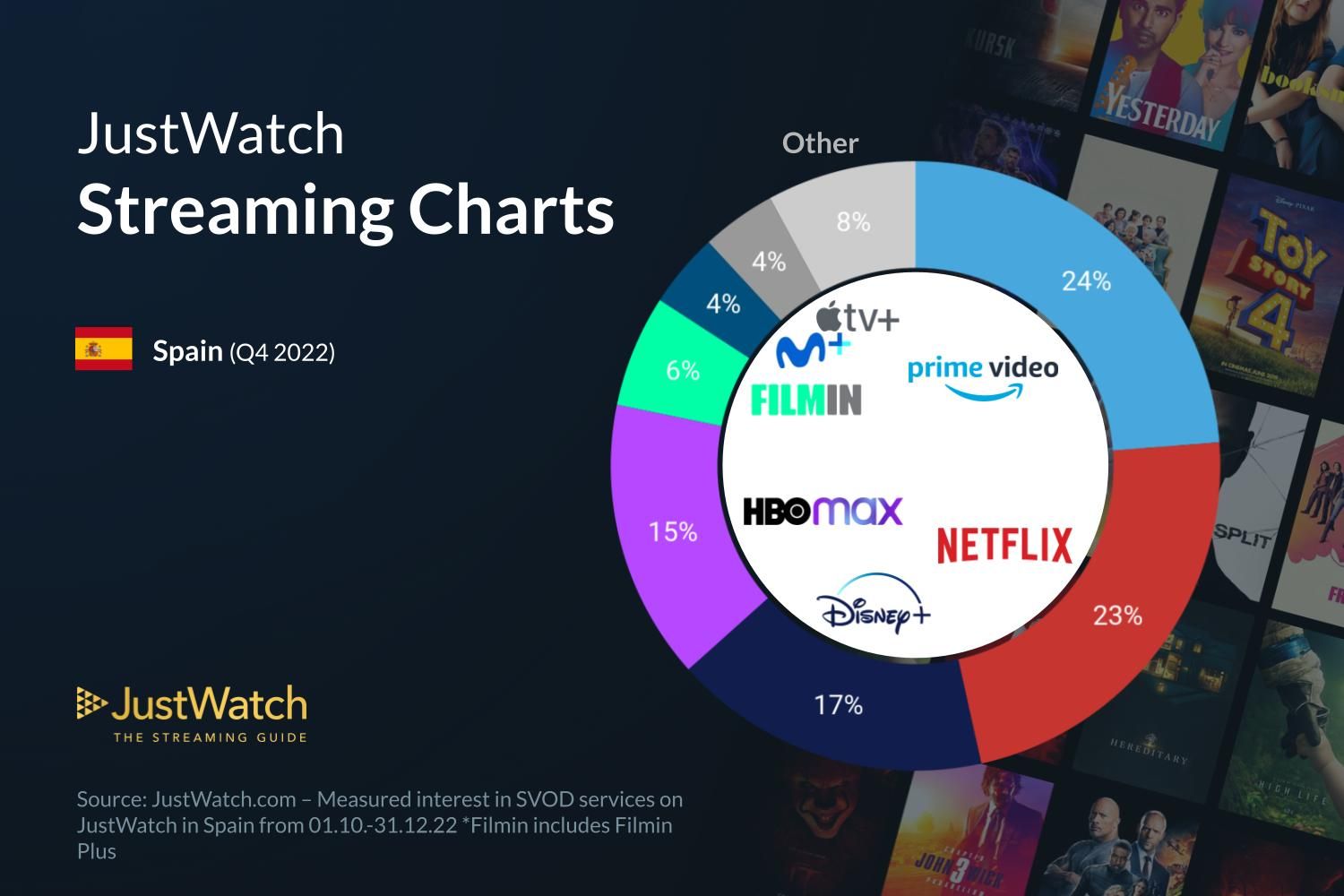 "En un cambio histórico, Prime Video es ahora el líder del mercado de SVOD en España y ahora tiene una ventaja del 1% sobre Netflix. Disney+ superó a HBO Max por el tercer lugar, manteniendo un margen del 5% frente a Netflix. Apple TV+ ganó +1% en el cuarto trimestre y ahora está empatado con Movistar+", señalan desde JustWatch.