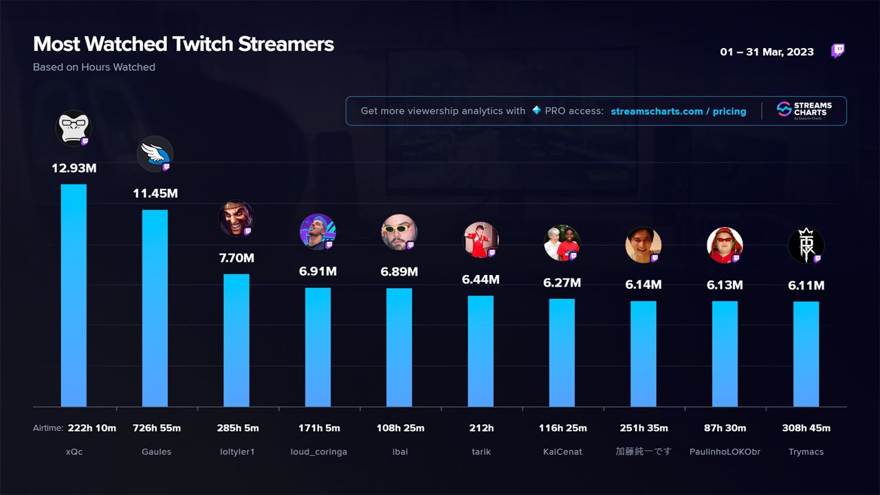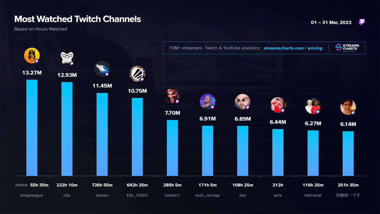 Además, si tenemos en cuenta que es una de las figuras más notables de Kings League, el número de horas viendo a Ibai es aún mayor, puesto que la Kings League lidera el Top 10 en marzo, con nada menos que 13,27 millones de horas visualizadas y más de 55 horas de directo.