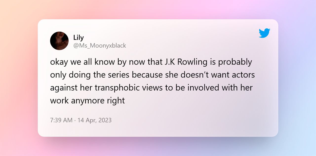 Principalmente tres cosas: 1) el hecho de que la saga literaria ya fuese adaptada, y recientemente, al cine teniendo como resultado una icónica franquicia que para muchos es más que suficiente y que no necesita de una nueva versión; 2) la poca confianza y falta de ganas de ver a otros actores en la piel de unos personajes que el elenco original ya hizo suyo en su día; y 3) que J.K. Rowling, cuyas polémicas declaraciones transfóbicas hicieron que fuese cancelada por muchos fans, esté implicada al 100% en el proyecto y tenga poder de decisión.