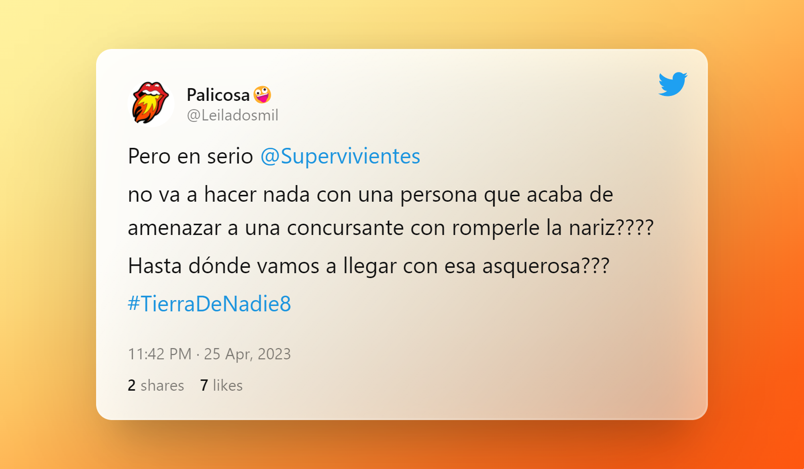 "¿Pero y el comentario ese de a lo mejor te rompen la nariz? Se puede ser mas chunga y macarra", "¿Eso no se sanciona?" o "en serio Supervivientes no va a hacer nada con una persona que acaba de amenazar a una concursante con romperle la nariz" son otras de las reacciones de los espectadores. Y es que, el comentario de Yaiza provocó una gran incredulidad entre los espectadores, que ya no pueden más con el comportamiento de la canaria.
