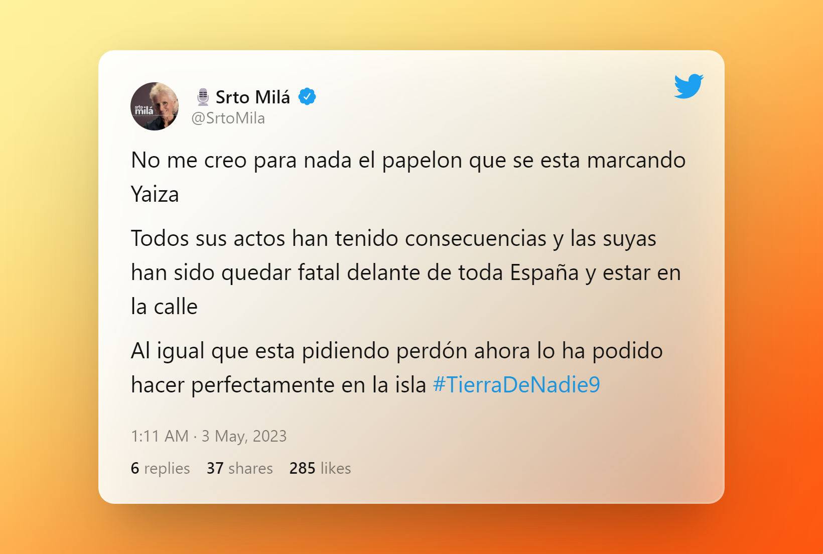 Yaiza Martín sigue siendo la protagonista de Supervivientes 2023. Tras su expulsión disciplinaria en la última gala, que ya pidió la audiencia en más de una ocasión, Supervivientes: Tierra de Nadie dio la oportunidad a la exconcursante de explicar su actitud "violenta" en Honduras. Algo que los espectadores criticaron desde el primer momento que se anunció, pero terminaron estallando al ver reacción de la canaria en el plató. Y es que, todos señalan lo mismo: "el papelón de Yaiza es inigualable".