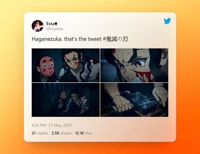 Antes de que llegasen a la aldea Gyokko y Hantengo, Tanjiro encontró en un autómata de un antiguo pilar una espada oxidada. Por lo que de repente apareció Haganezuka para hacerse cargo de la espada y darle el brillo que tuvo en su día. Pero era una técnica que necesitaría de bastante concentración y precisión.