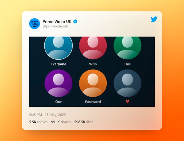 El tweet ya tiene más de medio millón de 'me gusta', por lo que al parecer ha sido uno de los movimientos de marketing más sustanciosos de Prime Video. Netflix está implementando una nueva política para cobrar a quienes comparten las contraseñas con otras personas.